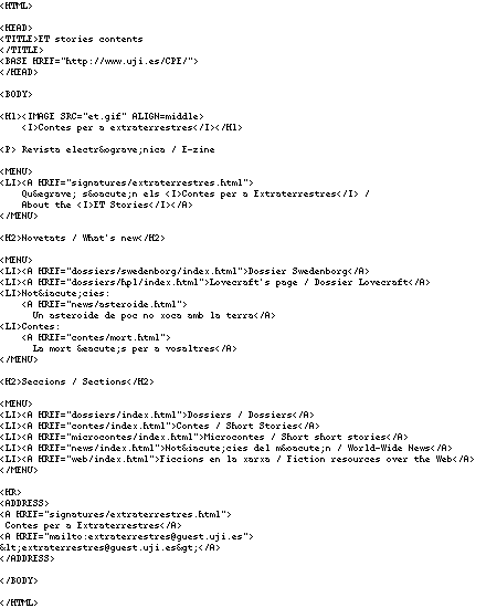 BERNERS-LEE, T. y CONOLLY, D. (1993). Hypertext Markup Language (HTML): A Representation of Textual Information and MetaInformation for Retrieval and Interchange, Internet Draft, IIIR Working Group, June 1993. <http://info.cern.ch/hypertext/WWW/MarkUp/HTML.html> o <ftp://info.cern.ch/pub/www/doc/html-spec.ps.Z>