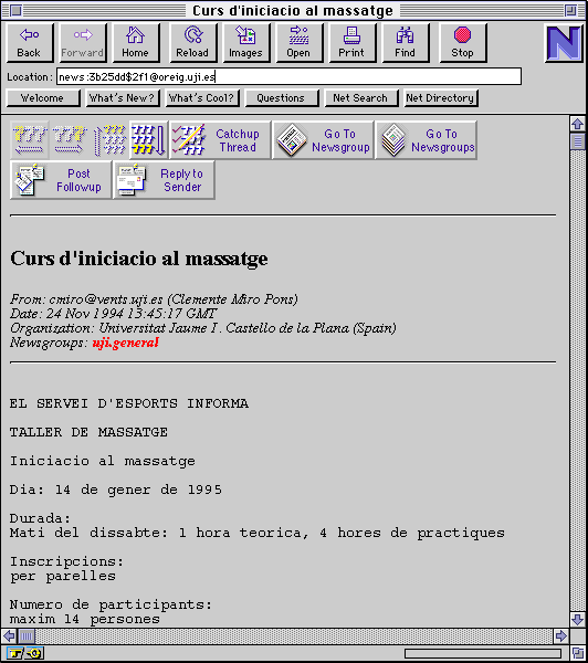 El éxito del WWW, el crecimiento de la telaraña, ha sido espectacular. Durante 1993 se pasó de 50 a 500 nodos. En 1994 se contabilizan ya miles de servidores en el WWW que distribuyen todo tipo de información (de ellos, trece en España [4]; el primero fue el del Departamento de Educación de la Universitat Jaume I, en septiembre de 1993).